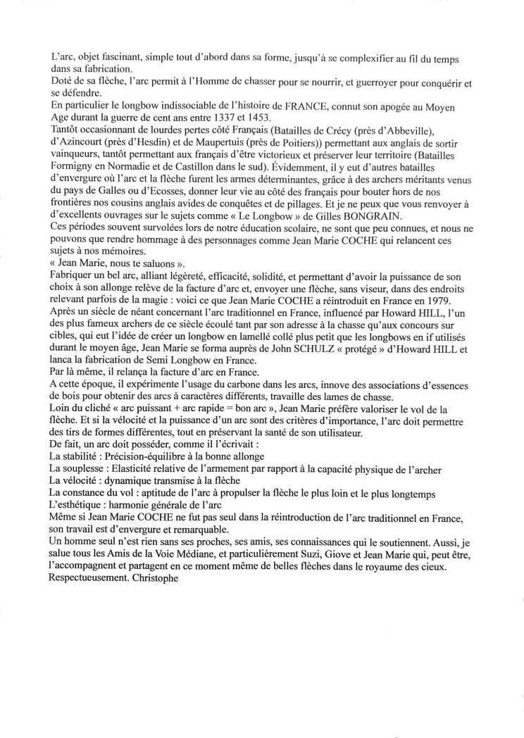 Texte pour l'anniverssaire de la disparition de Jean Marie COCHE